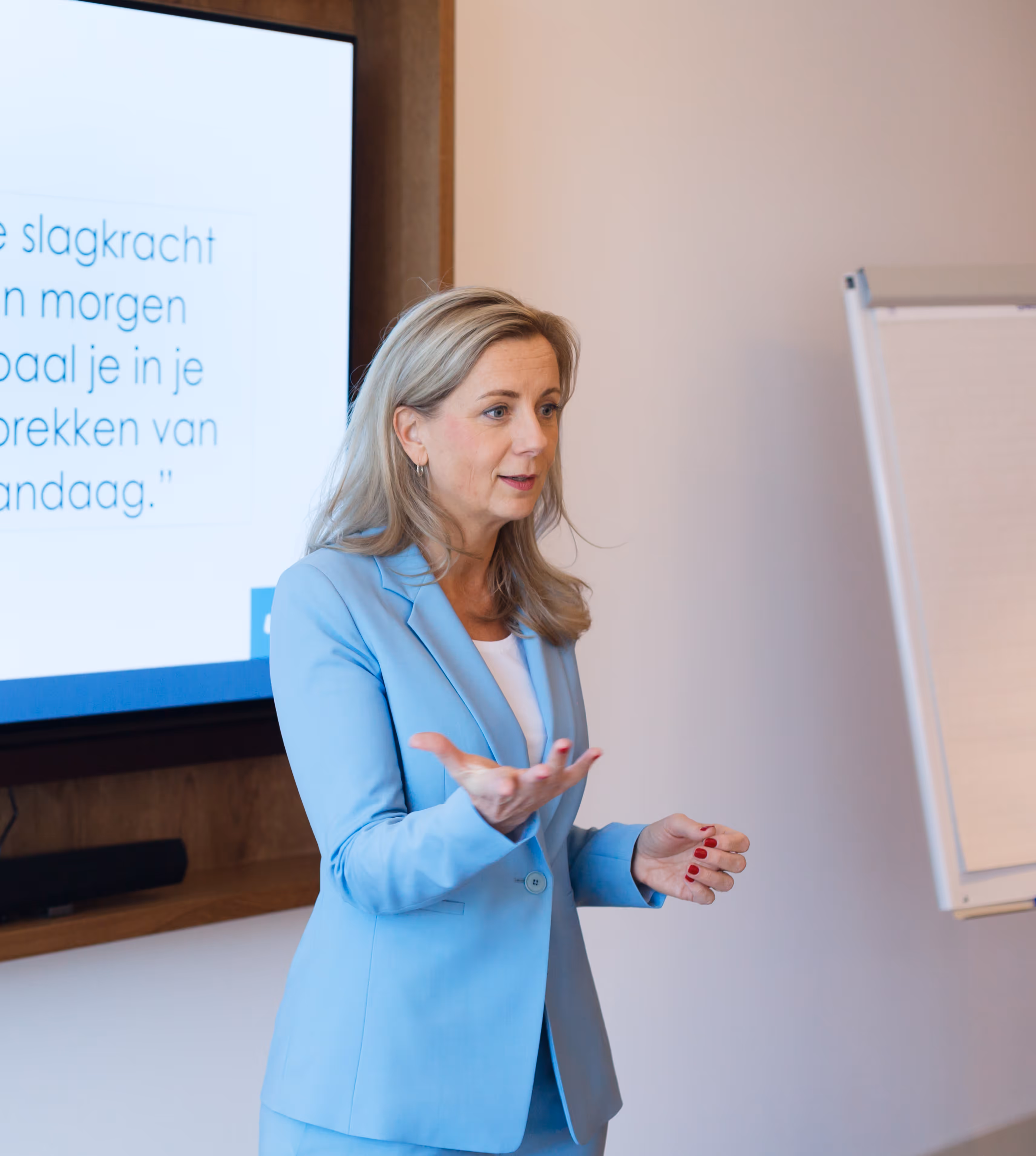 Na afloop bespreken we wat nodig is om het geleerde vast te houden, bijvoorbeeld via intervisie, coaching of een korte terugkombijeenkomst.